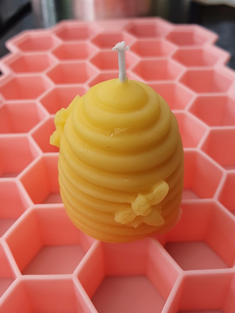 DBienenwachskerzeas Bienenwachs wird von den Bienen über ihre Wachsdrüsen als kleine Wachsplättchen ausgeschwitzt und anschließend für den Ausbau der Waben genutzt. Wachs